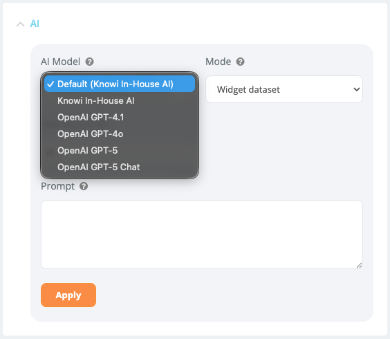 | Change Dataset (apply immediately) | Change to a different dataset. Applied immediately without requiring to save widget settings |